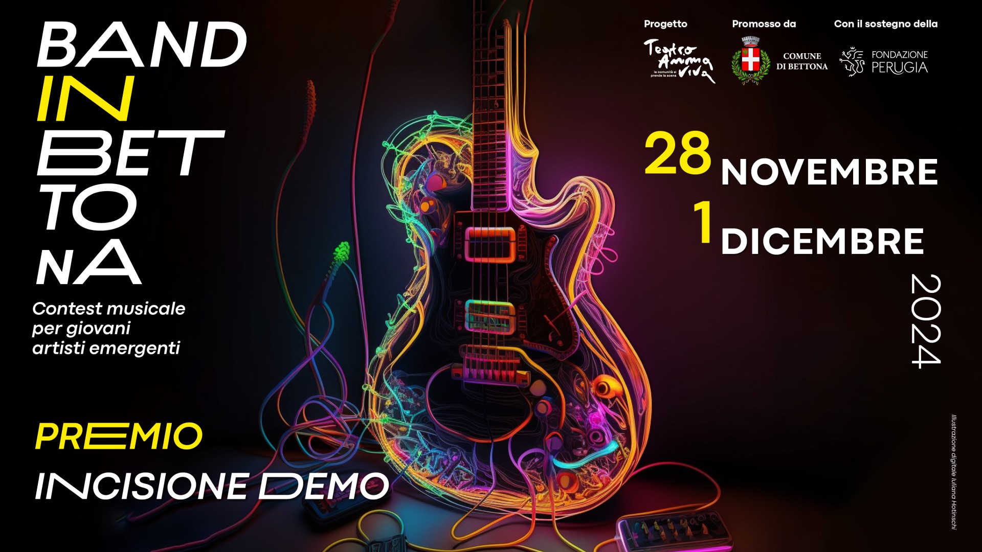 Gli step di selezione saranno i seguenti: Le demo inviate per la selezione verranno valutate dalla giuria composta da alcuni rappresentanti dei soggetti partner gestori delle attività del progetto "Teatro Anima Viva...la comunità si prende la scena" e da tre (3) esperti esterni. Gli artisti che supereranno le prime selezioni accederanno alla rassegna Band in Bettona, potendo esibirsi all'interno del Teatro Excelsior di Passaggio di Bettona che ospiterà l'intero evento. La rassegna Band in Bettona prevederà la "premiazione" di un solo vincitore.